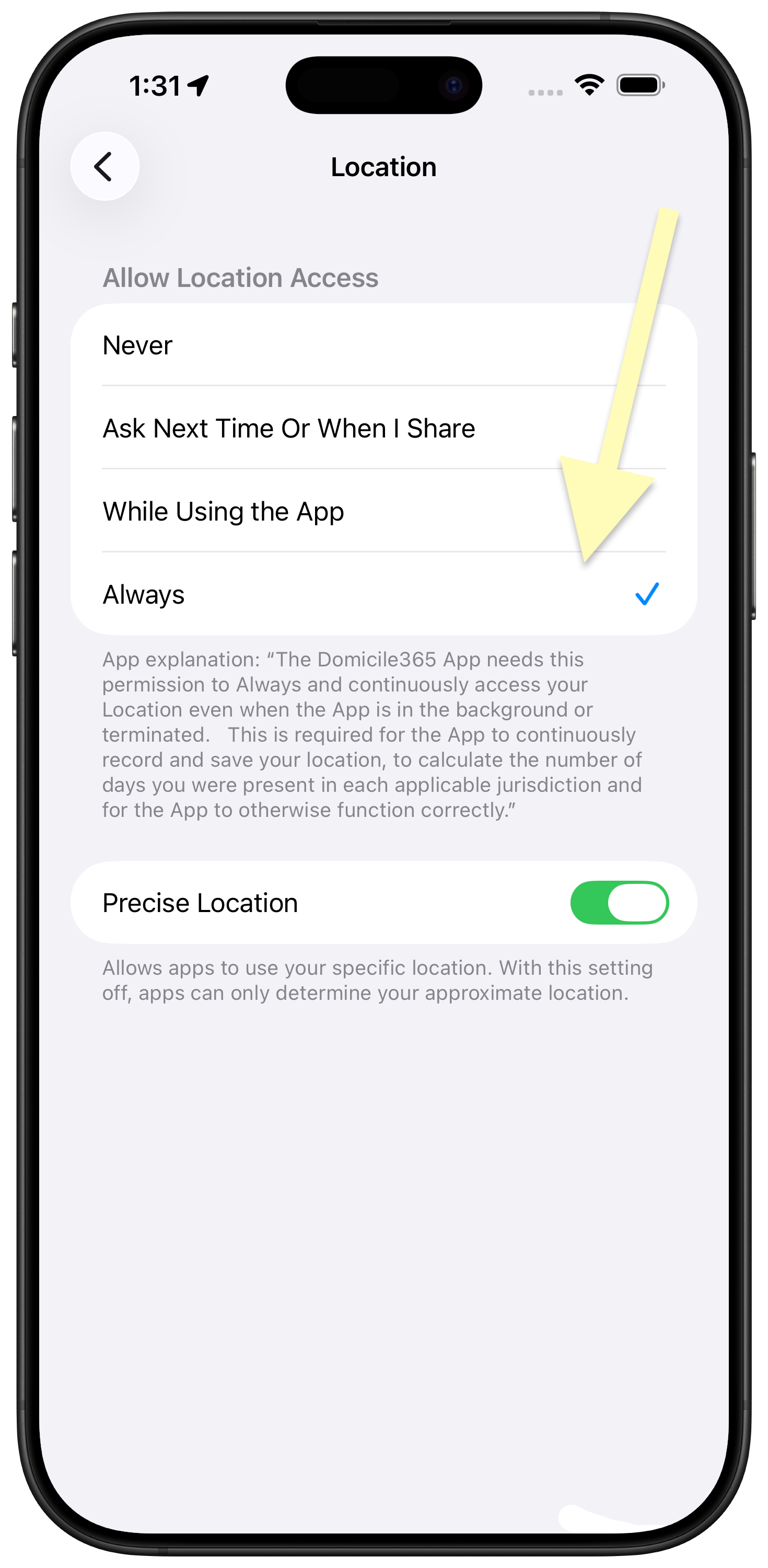 How to Set Up Your Domicile365 iPhone Location Permission Settings